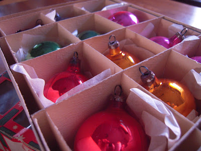 Well this past weekend I hit my favorite thrift shop, hoping to find something good. I didn't initially go in looking for ornaments but the front half of the store was nothing but CHRISTMAS, so I had a look. It was Jeremiah who spotted the ornaments (glass balls - I don't really like the plastic ones, although with a cat plastic would be a safer bet!) and began grabbing them up! When his hands were full he directed me to more ornaments and TOLD me to "get them all"! I did as he said and grabbed up all the boxes and bags of ornaments and piled them into his arms, all the while oblivious to an on-looker who had a pleading look in her eyes that said "dear god don't take them all". I didn't notice her, otherwise I probably would have felt bad and split the ornaments with her, she was only about 2 minutes behind us entering the store, but the man - he was ruthless! He saw the pained look on her face but was not going to give up! Once he has his mind set on something (especially Christmas-related) he doesn't give up! He is a good one to take to flea markets and thrift stores...our tastes are pretty similar, but he doesn't always share the same appreciation for beautiful (albeit useless) things like I do! Oh, that last haul yielded 71 ornaments (mostly gold) for $10! Nothing broken (so far!).