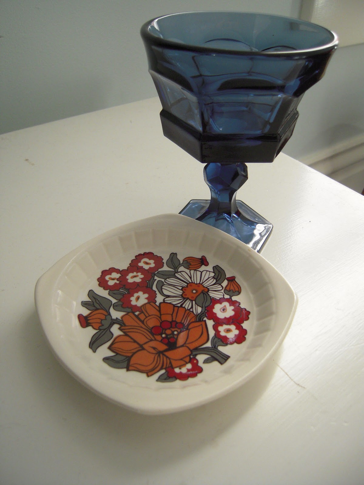 Another trip to a thrift shop (it helps take my mind off the ongoing saga of the ceiling in the future studio room) and another strange find. I grabbed a goblet-like glass (hey, it was cheap and pretty!) and a little dish I am sure to find the perfect use for. But I also grabbed something else...what is it? You tell me! There are no names or labels to be found on this thing, there isn't even a "made in" sticker or stamp! From my inter-netting, the closest thing I can find to this monster is a food warmer or a bun warmer (gotta keep those buns warm!). I haven't been able to find this exact one and it has 9 pieces to it! About 5 more pieces than all of the others out there on eBay and Etsy (more pieces means its worth more, right?!).