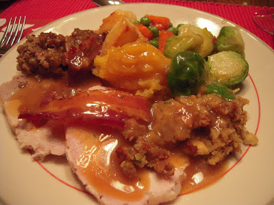 This year (as with most years past) Christmas dinner was at my mum's house. It was yummy (as always). Every year the dinner is pretty similar - you don't mess with a good thing! And every year we take the usual Christmas dinner food photos. It is a bit of a joke, since every year the meal looks almost identical - there must be dozens of photos just like the one below! Usually the only difference to spot are the Christmas napkins on the table!