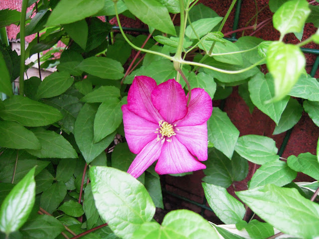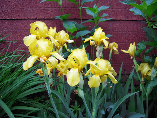 So far that lone pink flower is the only bloom to appear on my wild climber (what is it? Clematis? Morning Glory?). I am hoping more flowers show themselves soon. The Lilies were one of the first to appear, they are/were beautiful until they were flattened by some heavy rain.Yellow Irises! I've only every had purple irises so these yellow ones surprised me. Sadly I was working around the clock for the few days the purple irises were in bloom and I missed grabbing photos.