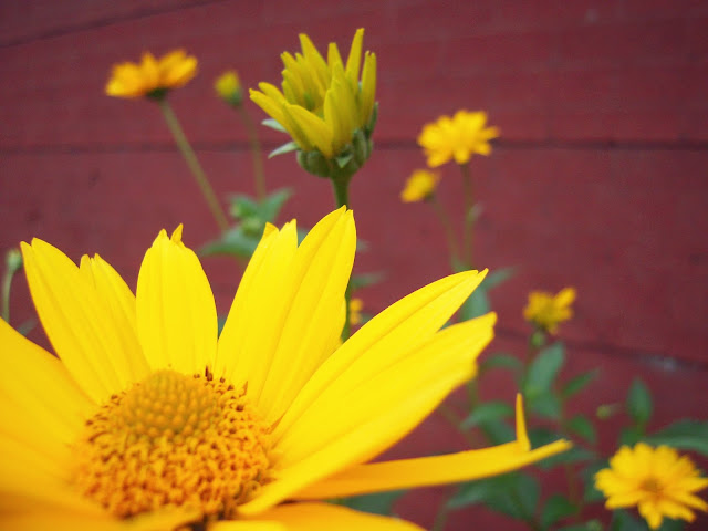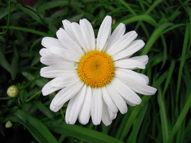 1 and 2 are some new additions to the front garden (2 was a real cheap/sad looking purchase that I'm hoping takes off!). 3 the hosta in the front is looking great and should have flowers in the next day or two. 4 the daisies have finally bloomed. 5 this is what it looks like deep in the "no lawn-mowing zone" where our teeny tiny bunny friend lives. 6 these tiny flowers are popping up in the wild part of the backyard (near bunny territory). 7 thankfully the ivy that someone tore off the back of the garage last fall is growing back lighting fast. 8 extreme close-up of extreme golden flower (still don't know what it is but I'm in love!).