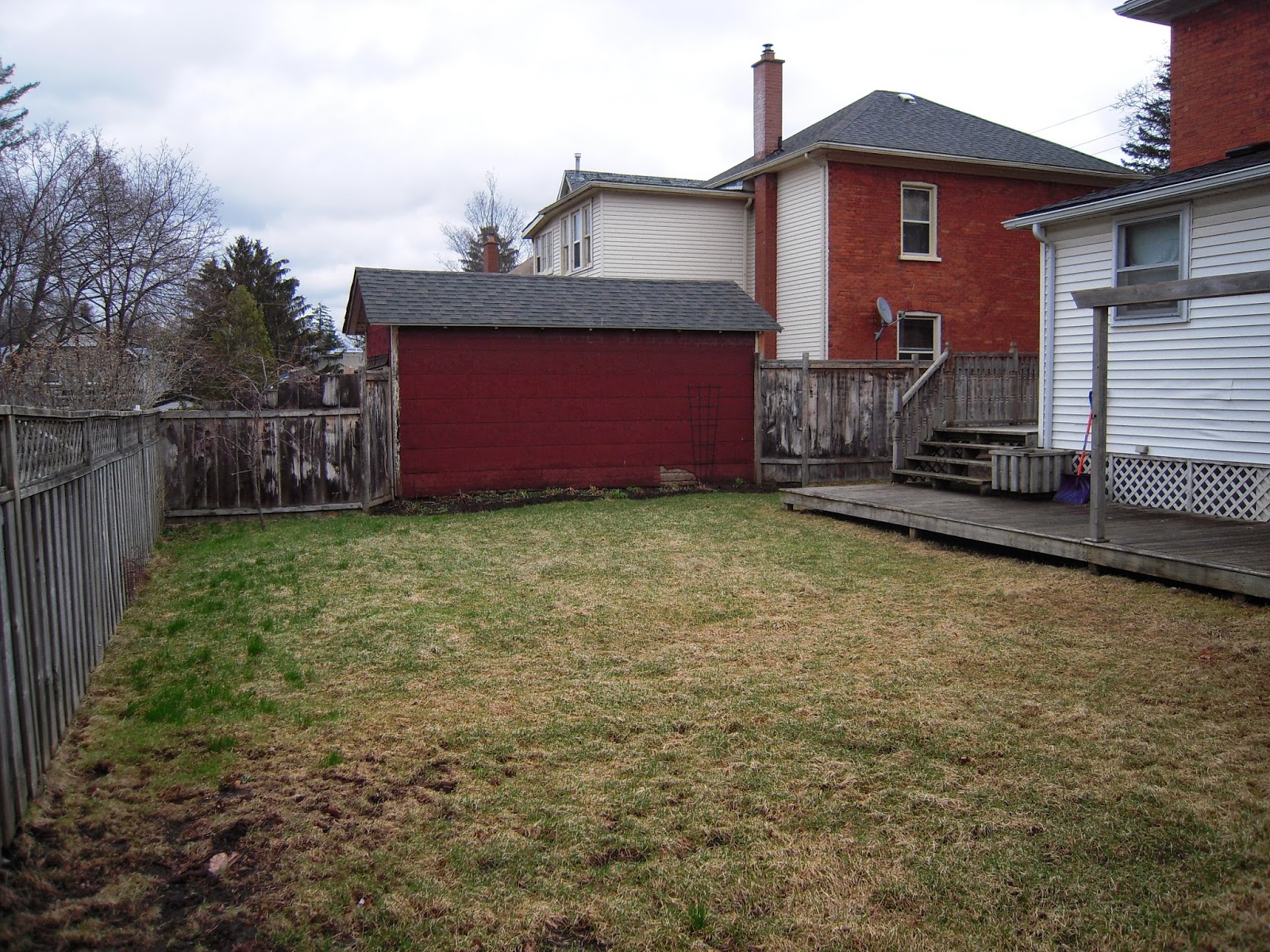 As you can see from the photos above, there has been a lot of work going on in the back yard! The raised beds and surrounding area are complete. The beds measure 4 feet by 4 feet with approximately 3 feet spacing in between the boxes. They were built using cedar and treated decking screws. The cost to build the boxes was approximately $200 - as I mentioned previously, I did not shop around for wood, so I'm sure it is possible to get some cheaper wood and as far as deck screws goes, they can be a bit pricey, but the bigger the pack the cheaper they are...the problem with that is I knew we didn't need 500 screws, so I had to go with the smaller, slightly more expensive option. Surrounding the beds is natural cedar mulch, in total I think 18-20 bags were used at a cost of $2.99 per bag. The boarder keeping everything neat and tidy is made of cement paving slabs, they were basically the cheapest we could find, just something to hold the weed barrier ($20 for one roll, $15 for the landscape staples) down and make a clean edge. The pavers were $1.49 each and 46 were used. The beds were filled with a mix of compost and peat moss. I didn't track the cost as closely as I would have liked because we hopped from one store to another over the course of a few weekends buying whatever was on sale - I checked weekly flyers to get THE best price I could - who wants to pay big money for dirt?!