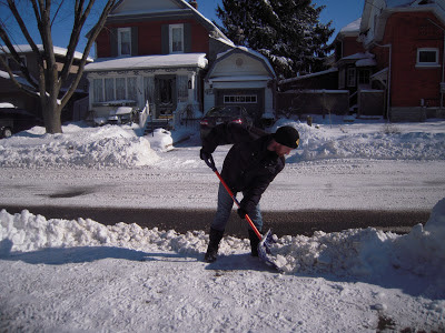Okay, so this picture is a weird one. There is a rabbit (we named Robert) who lives around our yard. We figured out his home is under the neighbors deck on the other side of our fence, but he comes out into our yard night after night (some evenings we spot him, but he is pretty elusive). Anyway, we are pretty careful not to pile snow over the entrance to his burrow, but with Friday's snowfall the area filled in. We did lend a helping hand by digging the area out, but Robert was bound to have some heavy digging of his own to do. Saturday morning I found he had spent the night digging, he even chewed on the fence boards in an attempt to get out (I cannot imagine the panic he must have felt). Luckily he is now free, there were tracks all over the driveway as evidence!