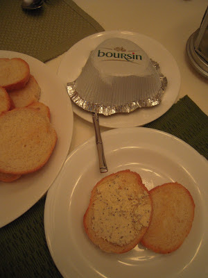 I will never get tired of eating this! Boursin cheese on toasted french bread. It was a challenge to leave room for dinner.