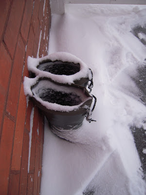 Fun fact: Jeremiah has never really seen this much snow. He talks a big game about knowing how bad it can get and that he will be fine - everything will always be fine. But really, how does he know?! He has never been snowed into his home, missed days of work or school for snow! And he never takes my winter/snow advice...after all, I have only been living in Canada my whole life! But there is this one thing gets me every time...he leaves his boots outside the front door, why? Don't ask me, there is room in the house. They get damp and cold and personally, I would be afraid of something living in them. I always warn him against doing it, but again, he will not take my advice. So this morning, the first thing I notice when I go outside to clear the snow? Boots full of snow - good luck drying those out! Do you think he will take my advice from now on?