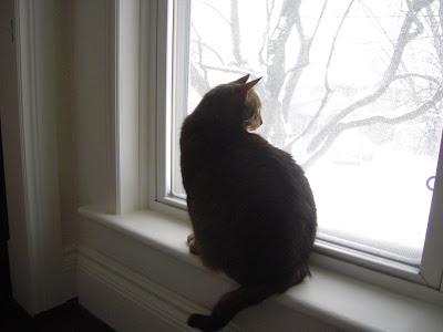 Being the cheeky cat that he is, Buster also likes to sit at the windows and watch people (mainly me) shoveling the snow. I think he gets some joy from watching others suffer...he is a cat after all!