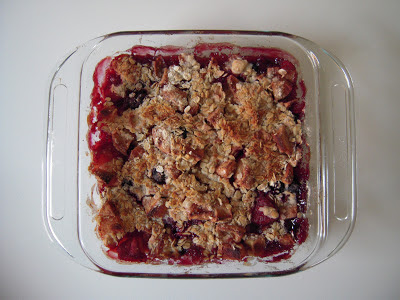 I will admit that last week I sort of made a trial apple crumble. It was very spur-of-the-moment and I made do with what I had on hand. It was not bad, but I think I may have perfected things this past Sunday! The recipe is below...it is nothing ground breaking, just a fairly standard fruit crumble recipe, but something about making a warm, hearty and fruity dessert is satisfying on a cold day (and damn it was cold Sunday!).