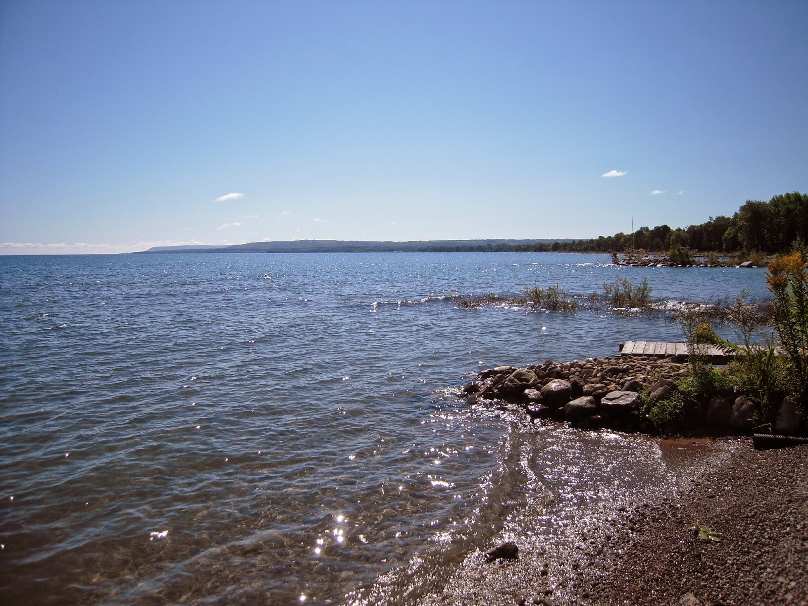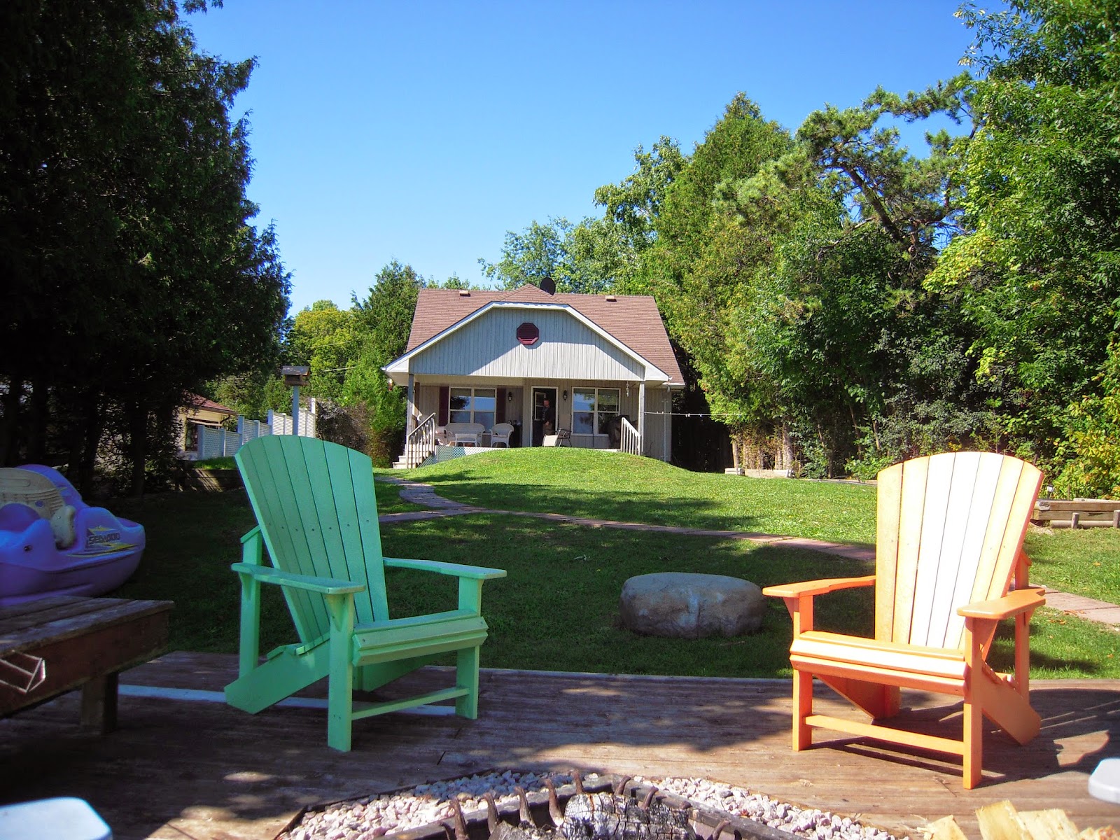 The spare room was completed as we were having visitors from Ireland. In traditional fashion, when you live in Ontario and have guests visiting Canada for the first time, we went up the CN Tower immediately following their arrival. Let me tell you, it is worth going up for dinner. Let's be honest, going up the CN Tower is an expensive elevator ride and depending on the time of day and weather, you never know what kind of view you will have. If you go up the tower for dinner then the elevator ride is free - and the fixed price menu makes it really worth while. The food was fantastic, and what luck did we have?! There was a massive thunderstorm happening during the dinner - we are talking MASSIVE thunderstorm! From the time we sat with our drinks until well after we left for the night, a lightning storm hit the tower - now it would be difficult to plan a trip like that if you wanted to see such a light show, but if you have the chance to be at the top of a giant lightning rod during a storm, take it, its madness! The tower is so solid you couldn't really hear the thunder but the flashes of light were something else! The tower was hit repeatedly while we were there and it was spectacular. The only downside is that the outdoor observation deck is closed in such weather...boo! The following day we packed our bags and car and took our visitors for a week of Canadian cottaging on Georgian Bay. As this all happened the week school started back there was virtually no one in the area staying in the surrounding cottages so it made for a quiet and relaxing time. The weather was good for the first half of the week before we got a good dose of rain and cooler temperatures. We still managed a splash in the lake and a hike in a near by park where I saw my very first porcupine up close and personal! I love porcupines and have always wanted to see one and in the excitement surrounding the sighting I forgot to take photos.